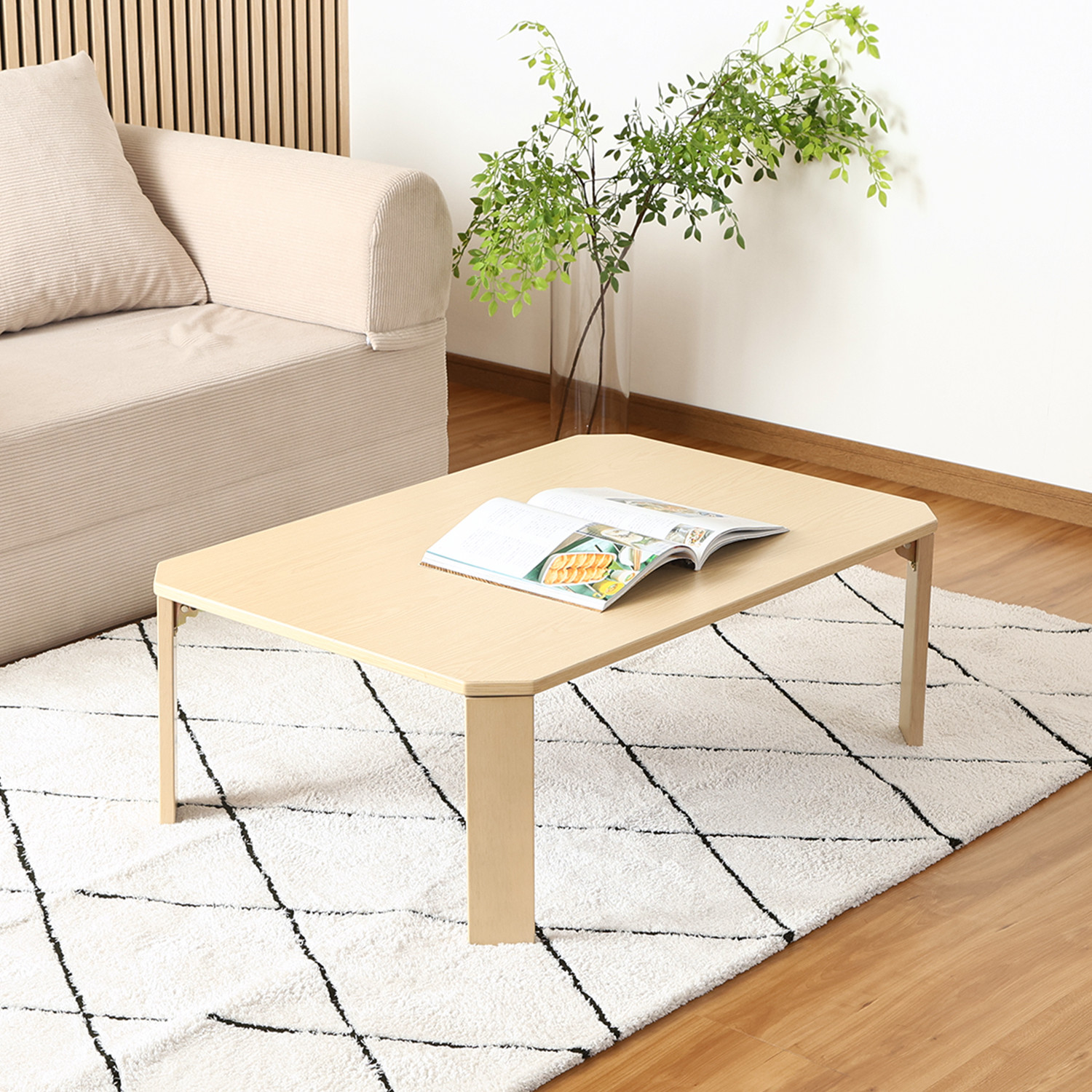 UVモダンローテーブル エルフ ホワイトオーク 90x60