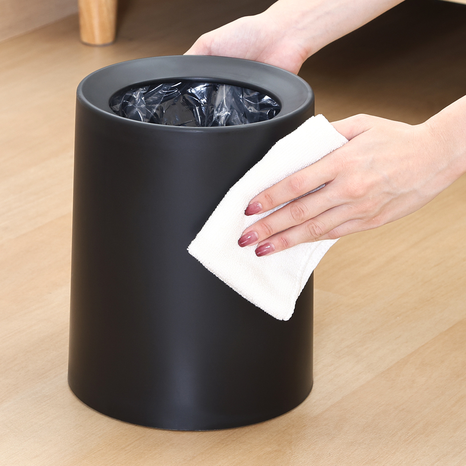 袋が隠せるゴミ箱 丸型 6L BK