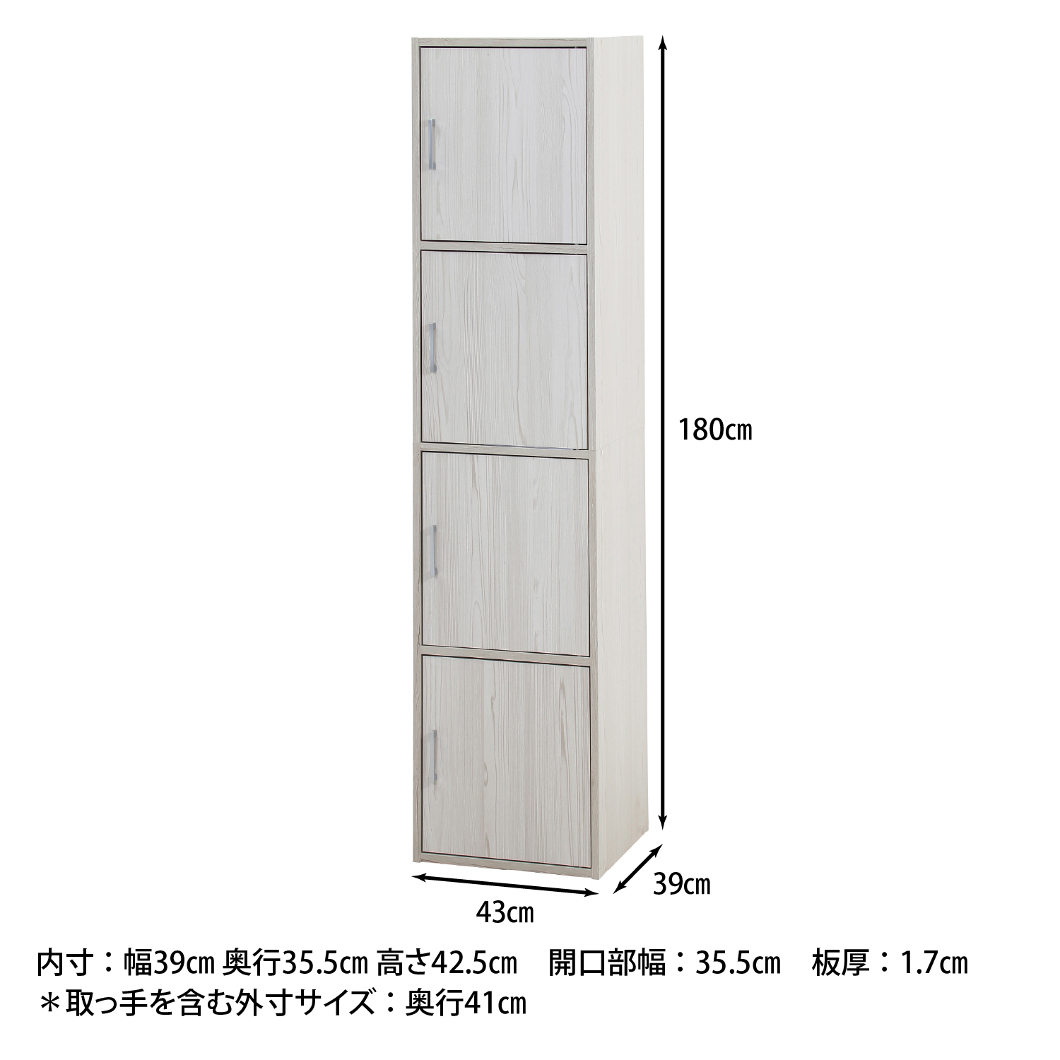 扉付き収納ボックス4段 ホワイトウォッシュ