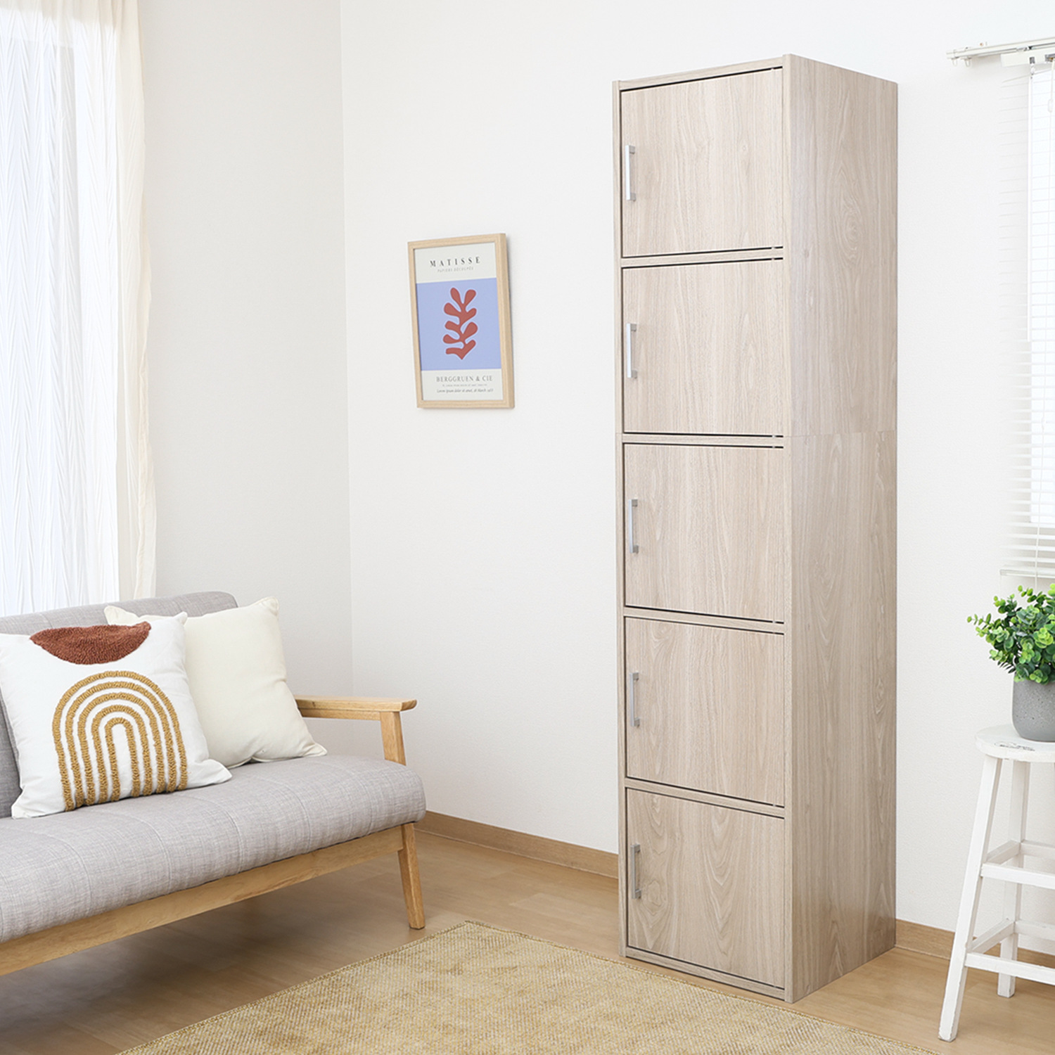扉付き収納ボックス5段 アッシュグレー
