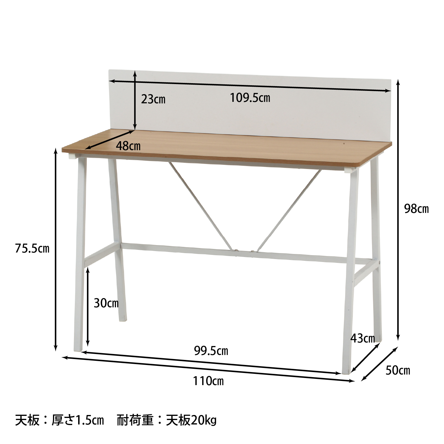 マグネット対応バックパネル付きデスク フィーノNA/WH